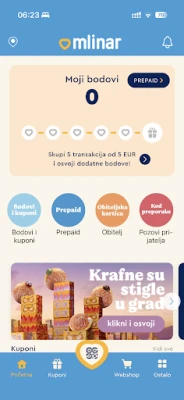 Mlinar nagrađuje vjernost! Skupljaj bodove pri svakoj kupovini i mijenjaj ih za omiljene Mlinar proizvode. Upravljaj sredstvima unaprijed uz prepaid funkciju. Ostvari dodatne pogodnosti pozivanjem prijatelja. Tvoja omiljena pekarnica, tvoja nagrada.