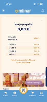 Mlinar loyalty aplikacija donosi i praktičnost unaprijed uplaćenog iznosa. Definirajte željeni budžet za svoje omiljene Mlinar proizvode i dopunite ga gotovinom ili karticom direktno u prodavaonici. Uplaćeni iznos odmah će biti vidljiv u aplikaciji, oslobađajući vas brige o gotovini ili karticama pri svakoj sljedećoj kupovini. Jednostavno skenirajte aplikaciju i uživajte u brzoj i glatkoj transakciji, istovremeno nastavljajući prikupljati bodove za dodatne pogodnosti.