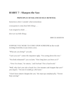 Kroz promišljen sadržaj, naučite kako prakticirati "Biti proaktivan" preuzimanjem inicijative i oblikovanjem vlastite sudbine, umjesto da ste prepušteni okolnostima. Razvijte sposobnost "Početi s ciljem na umu" postavljanjem jasnih vizija za sve što radite, što osigurava smjer i smisao svakom koraku. Usvajanje principa "Prvo staviti najvažnije stvari" pomoći će vam da se fokusirate na ključne prioritete i ostvarite značajan napredak u svakodnevnom životu, oslobađajući vas od zamke hitnosti.